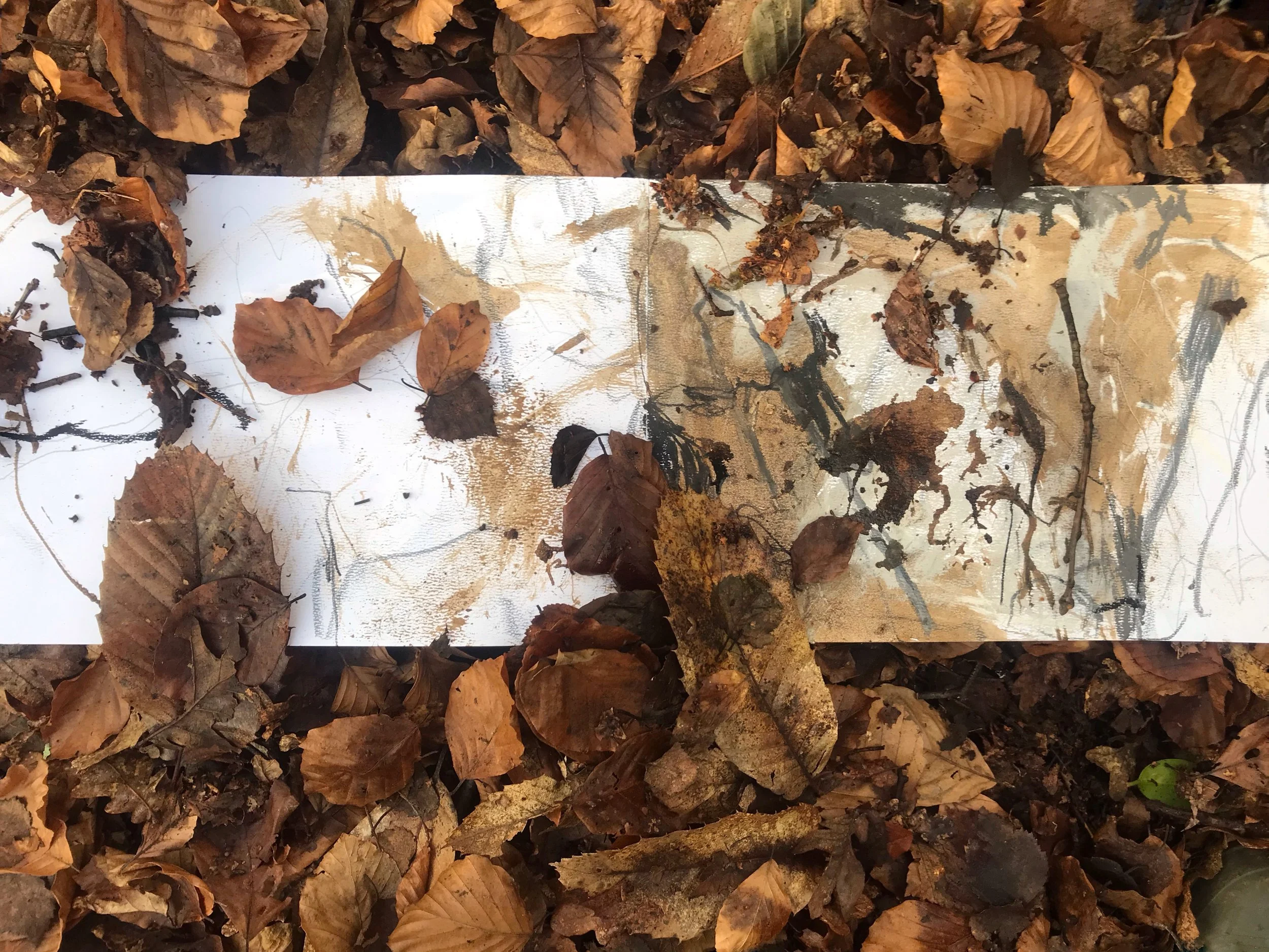 Twilight on Ivinghoe Beacon, Hertfordshire, UK. October 2021 - Wind drawing. Sticks and dried plants used as mark making tools.